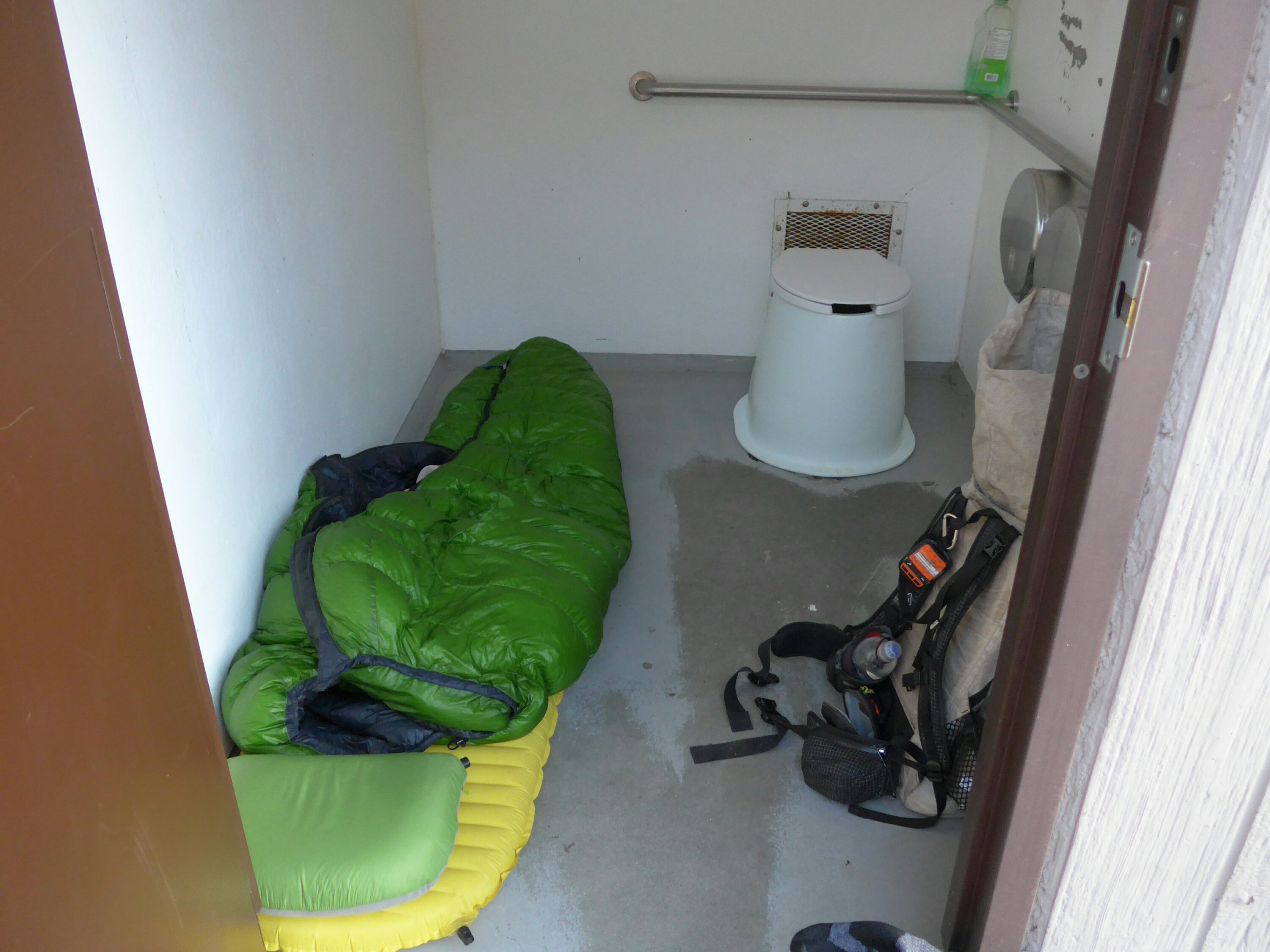 Um 2 Uhr nachts laufen wir los, da es sehr warm ist und wir kalten harten Schnee für den Pass brauchen. Nach 1/2h stetig bergauf mit schweren Rucksack, bleibe ich stehen, schaue verzweifelt meinen immer weiter entfernten Freunden nach. Ich habe einfach keine Kraft mehr. Seit einer Woche habe ich kaum gegessen, zuletzt habe ich mir gerade einen Müsliriegel am Tag reingezwungen, wegen Übelkeit und Appetitlosigkeit. Und was ich gegessen habe, blieb nicht lange drin. Das bei einem täglichen Kampf durch Tiefschnee zehrt aus! So kann ich die anstehende lange (10 Tage) und fordernde Etappe (7 Pässe, plus Flussquerungen und Tiefschnee) schaffen. Beim Laufen kreisen pausenlos die Gedanken: Ist das klug was ich hier mache? Ich wünsche mir, jemand würde mir sagen „Dreh um, das geht so nicht“ und mir damit die Entscheidung abnehmen würde. Mir kommen die Worte von Frodo, dem trailangel aus San Diego in den Kopf „make wise decisions“. In Tränen stehe ich auf dem Trail, ich bin so erleichtert weil ich weiß, ich MUSS umdrehen, aber zugleich tieftraurig. Ich rufe meinen Freunden die ENtscheidung hinterher, und schlurfe wieder den Berg hinab. Im Klohaus beim Parkplatz schlafe ich noch etwas -gute Wahl, da ich fast pausenlos aufs Klo muss. Gut, dass es soviel Klopapier gibt. Mir geht’s nicht super schlecht, aber gut definitiv auch nicht.