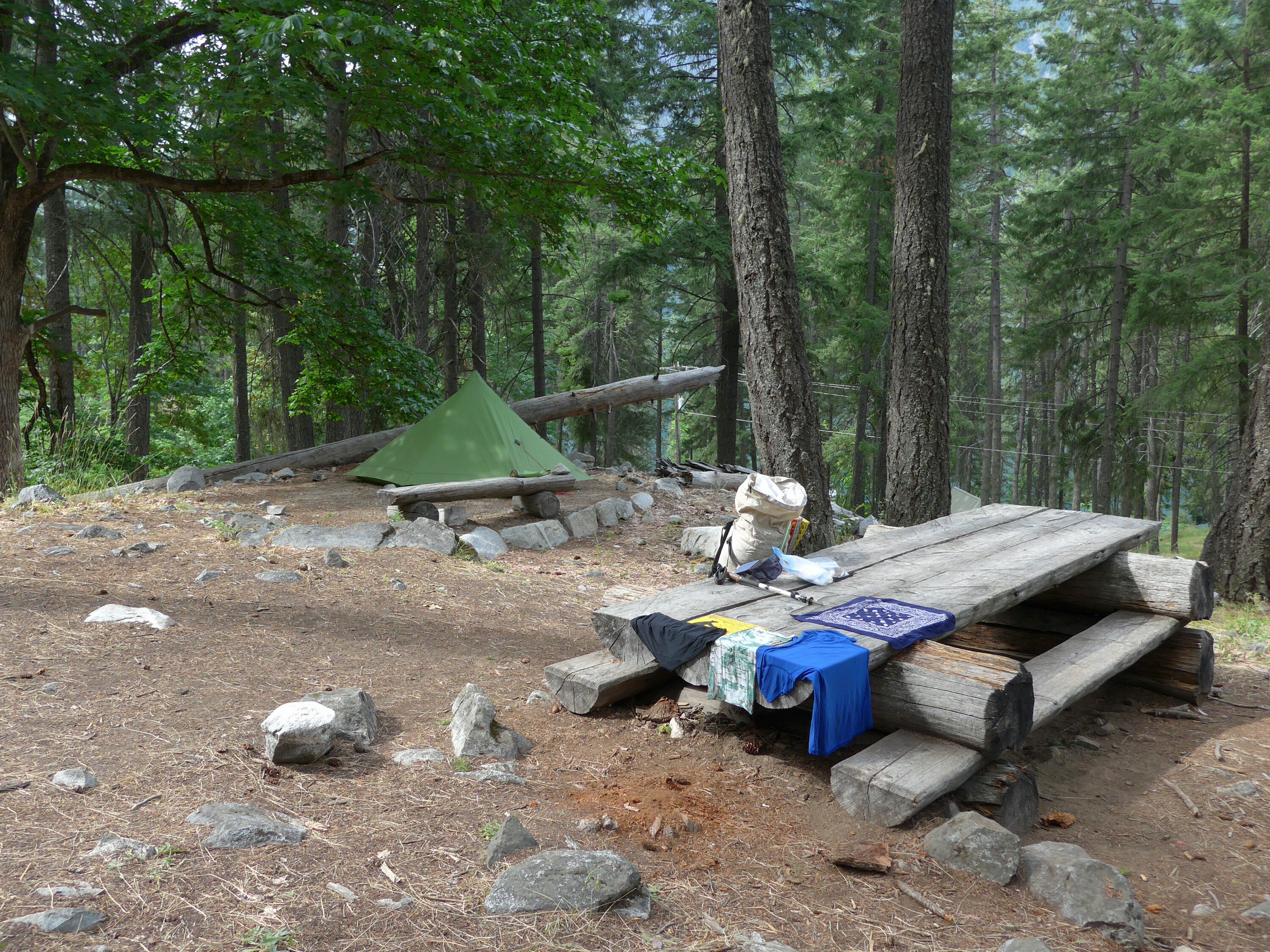Ich schnappe mein Essenspaket und nehme direkt den nächsten Shuttle zurück zum Trail. Hier schlage ich mein Zelt auf.