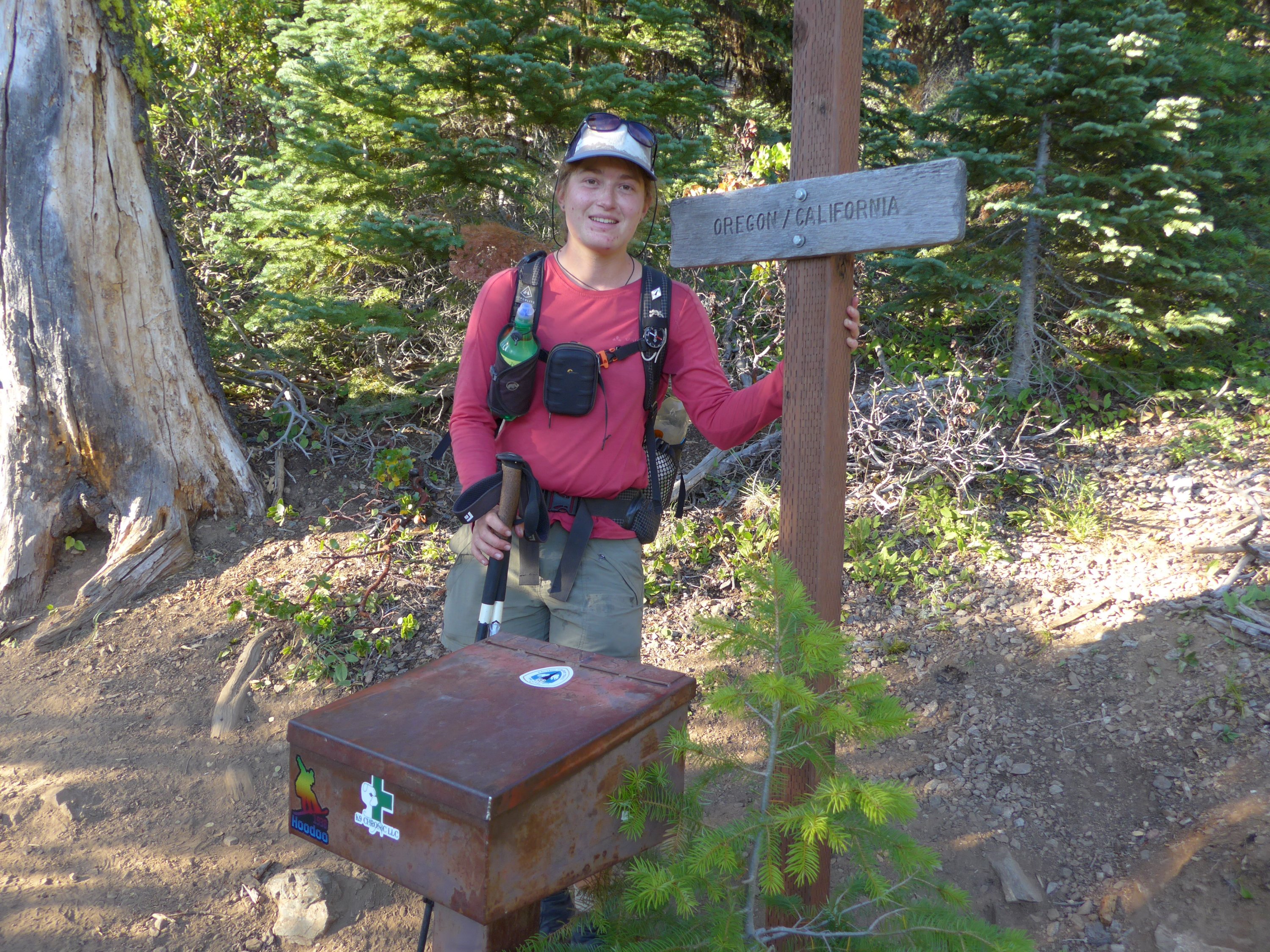 Ich genieße es, heute oft mit Aussicht zu laufen, freue mich aber auch über jede schattenspendende Baumgruppe. Heute treffe ich tatsächlich einen PCT hiker, der aus meinen Nachbarort Traisa kommt, 5 Minuten Fußweg zu meinen Haus, irre… Am späten Nachmittag überquere ich die Grenze zwischen Oregon und Kalifornien. Endlich, ich bin zurück: Nur noch ein halber Staat zu laufen!