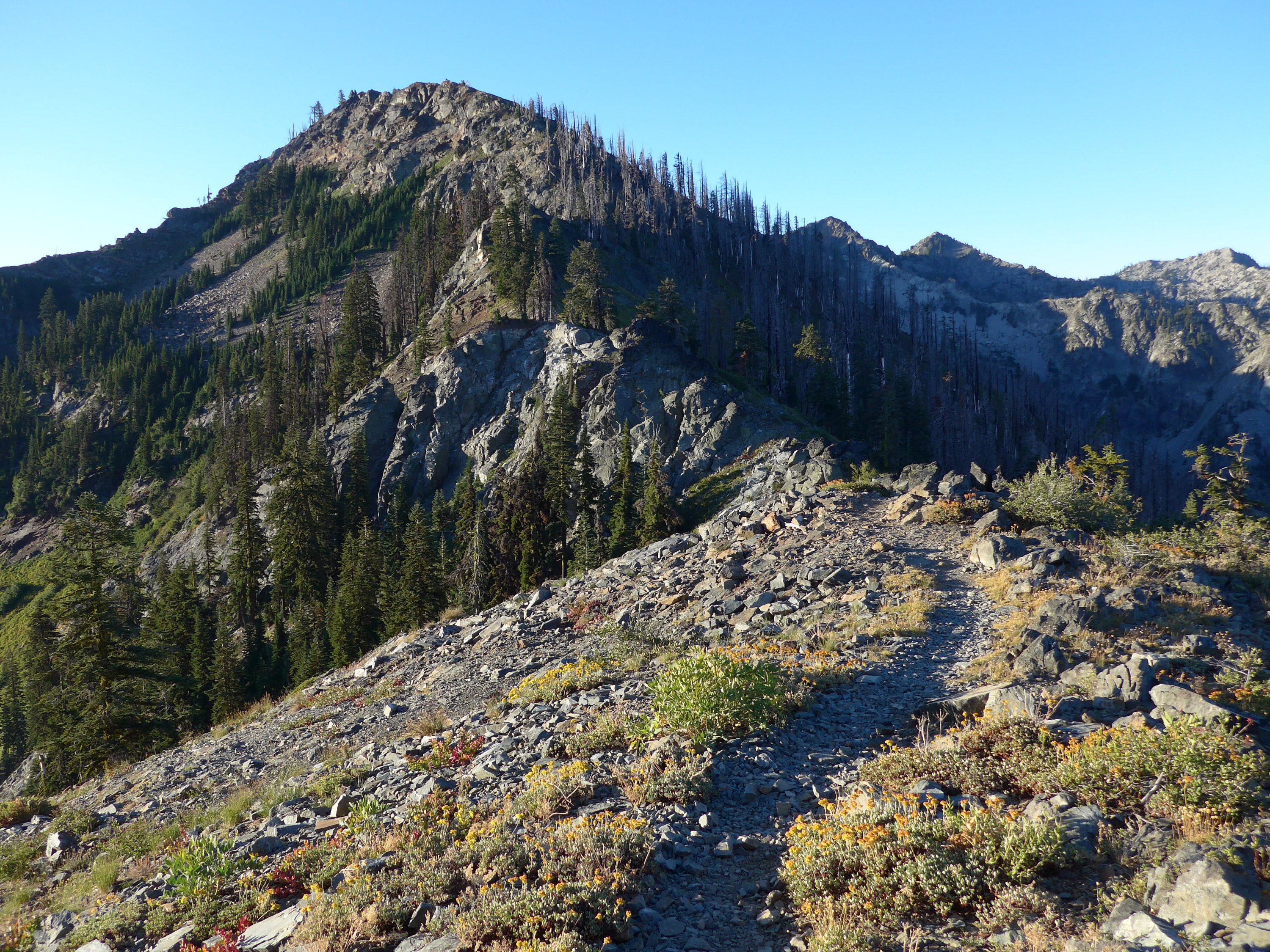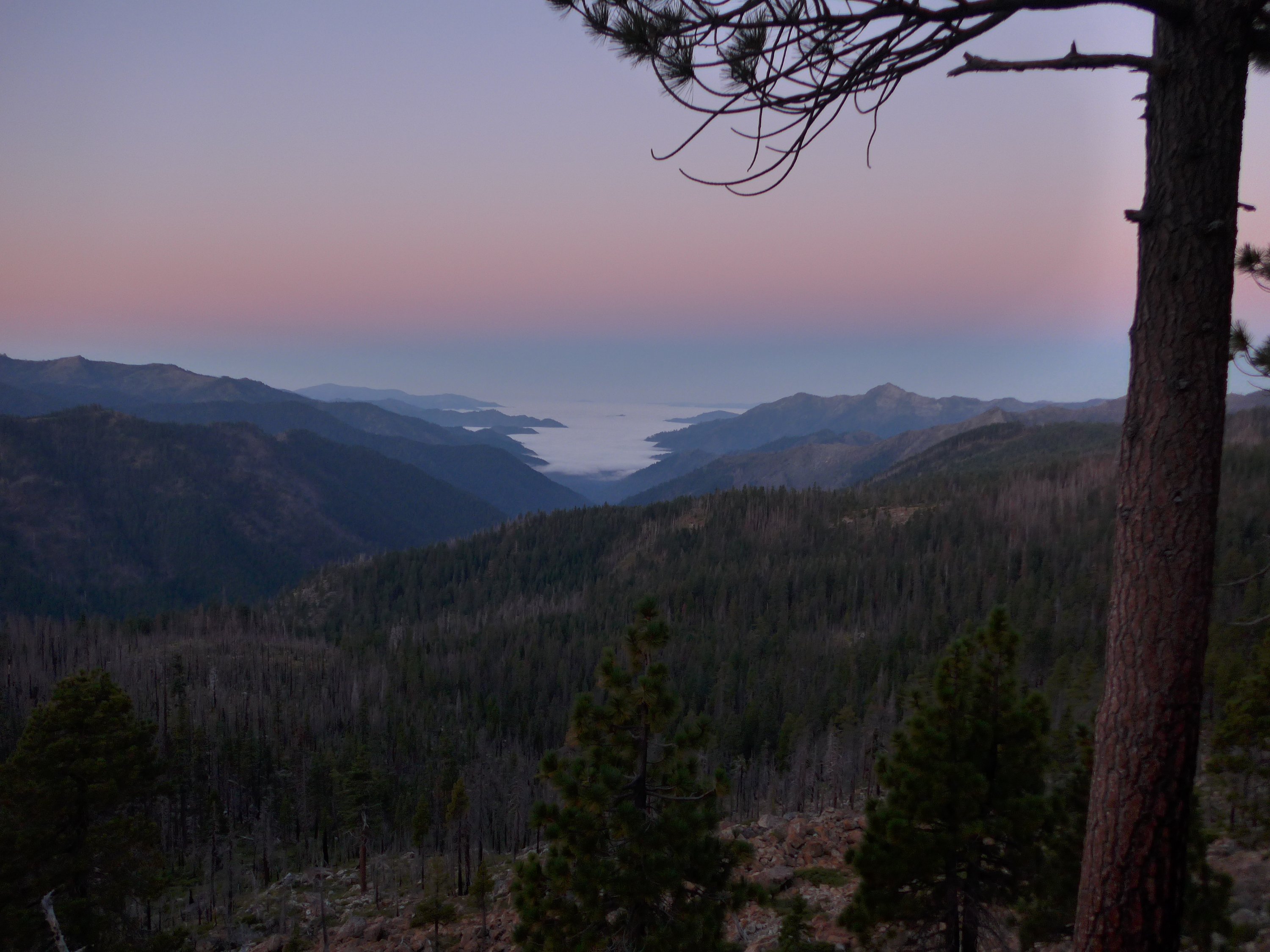 Ich merke, dass es langsam herbstlich wird. Die Tage werden kürzer, jeden Tag stehe ich im Dunkeln auf, laufe im ersten Dämmerlicht los, baue mein Zelt in Zwielicht auf und esse im Dunkeln zu Abend. Heute geht es ganze 17 Meilen bergauf. Zunächst durch ein schönes tief eingeschnittene Tal, dann in Serpentinen den Berg hoch.