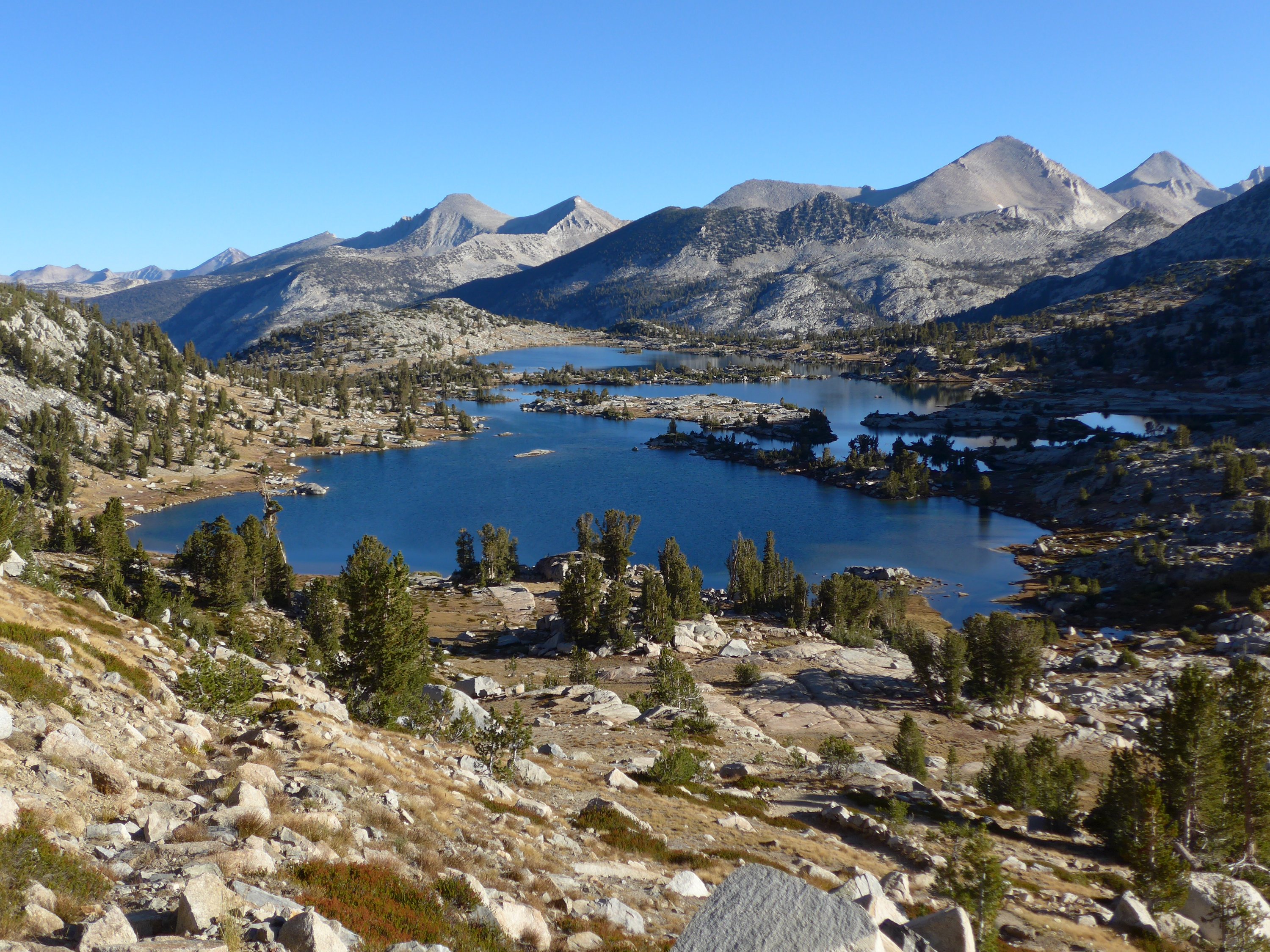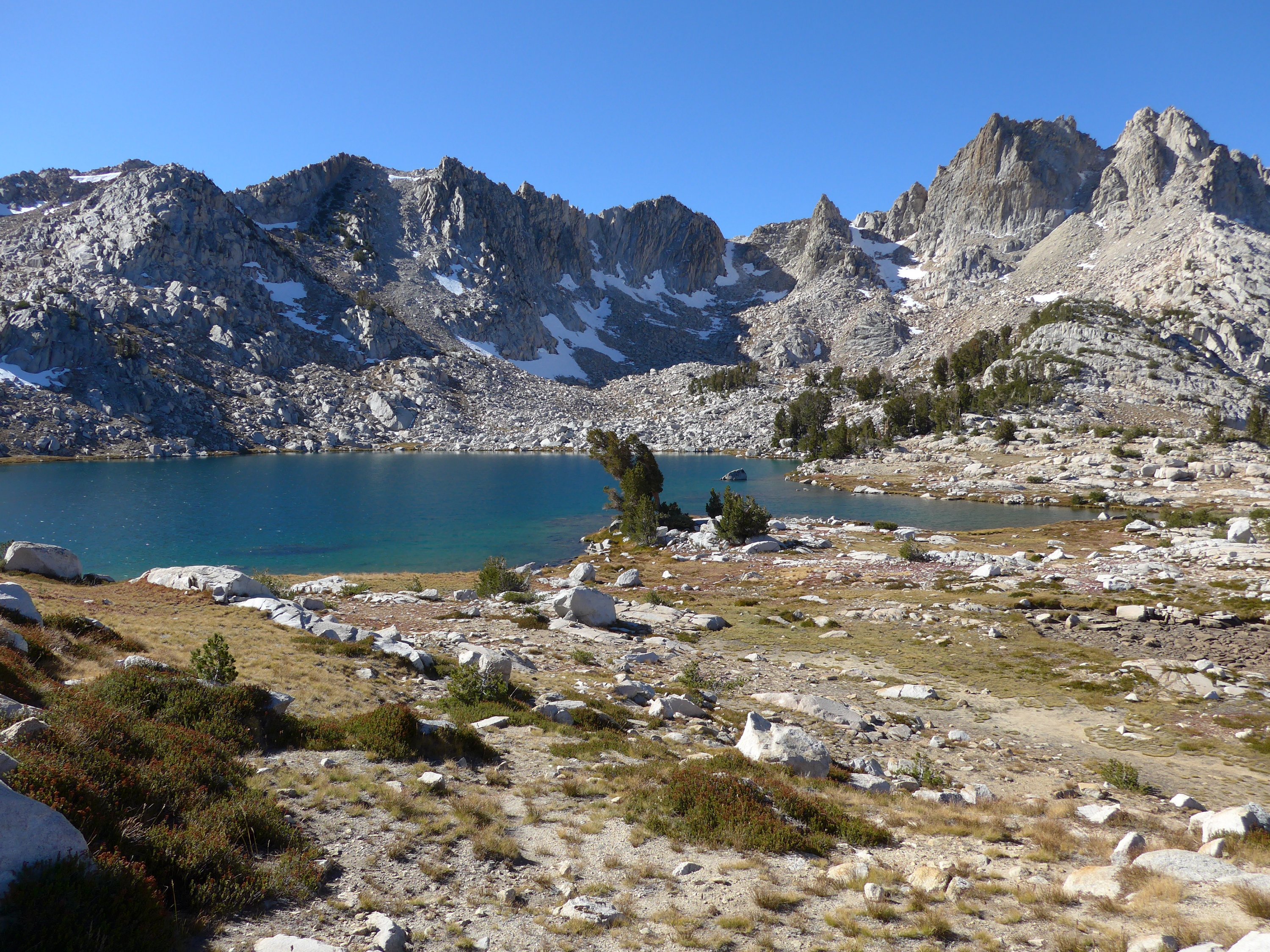 Zehn Meilen laufen wir bergauf zu Glen Pass. Dabei kommen wir an den Reese Lakes vorbei. Ein Traum! Türkisblaues Wasser, Sandstrand an der einen Seite und senkrecht aufragende Felswände auf der anderen.