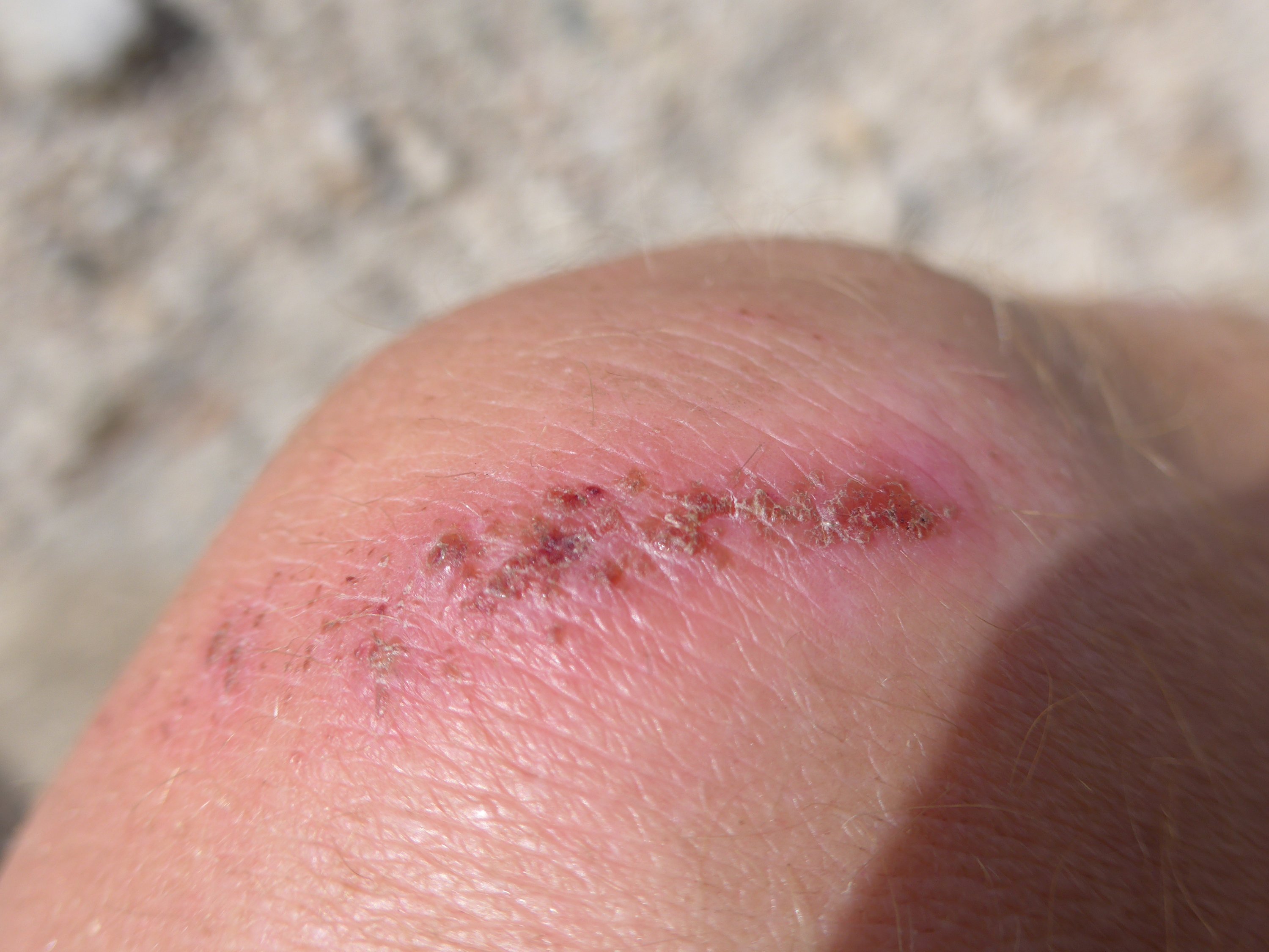 Ich zelte direkt am Fluss Bear Creek, und freue mich als beim Abendessen Super Jay noch ins Lager hoppelt! Da es so viel Steigungen gibt habe ich brav meine Knie Bandage getragen – die leider inzwischen so dreckig ist, dass sie mir die Haut vom Knie schmirgelt.