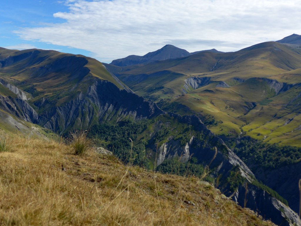 Als wir aufstehen hängen die Gipfel voll schwerer schwarzer Wolken und es fängt an zu tröpfeln. Es geht, wie soll es auch anders sein, steil ein Tal hinauf. Schon nach kurzer Zeit klart der Himmel auf, und wir können die Regenjacken wieder verstauen. Zum Glück, denn schon bald tropft nur so der Schweiß vom Gesicht. Mit „nur“ 1100 Höhenmetern und ohne Kraxelei sind wir schon bald auf dem Pass. Wir genießen das Panorama und quatschen mit den anderen GR hikern, die wir nun schon seit ein paar Tagen sehen. Auch der Abstieg ist heute einfach, sodass wir schon gegen 14 Uhr im Tal und an der offiziellen bivouac Stelle stehen. Nach nur 11 km können wir locker weiter laufen, doch dann stünde ein weiterer Pass an. Häufig ist durch die Topographie hier die Etappenwahl recht unflexibel und man kann sich nur entscheiden zwischen sehr wenig oder unglaublich tödlich viel. So bleibt noch Zeit in das Nähe gelegene Dörfchen zu laufen, bestehend aus 10 Häusern und einen Gite d’etape, wo wir uns Muffins gönnen. Auch können wir etwas Brot nach kaufen -ein Glück, da wir unser Proviant für diese Etappe von 3 auf 4 Tage strecken müssen.