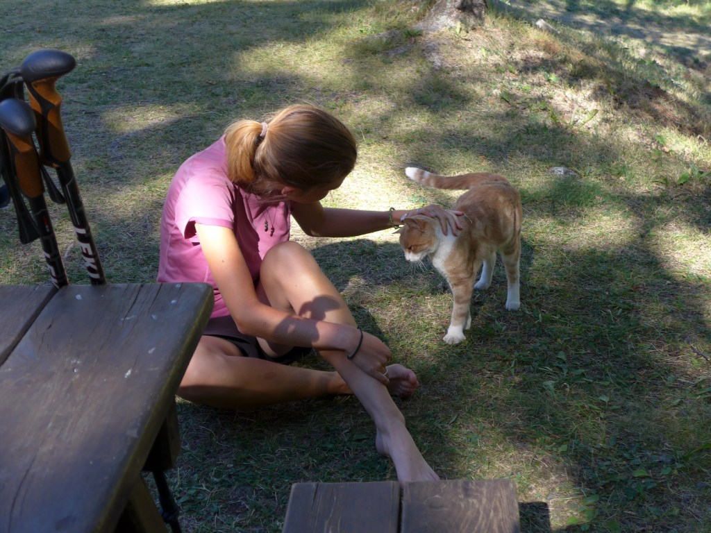 Da es nun nicht mehr weit ist bis zu unserem Zielort La Grave gehen wir auch nur noch 10 Minuten weiter bis zum bivouac Platz des Ortes. Hier kann man für 5€ PP schlafen, es gibt einfache Sanitäranlagen, Schatten -und vor allem einen überaus verschmusten rot getiegerten Kater, mit dem wir sofort Freundschaft schließen!