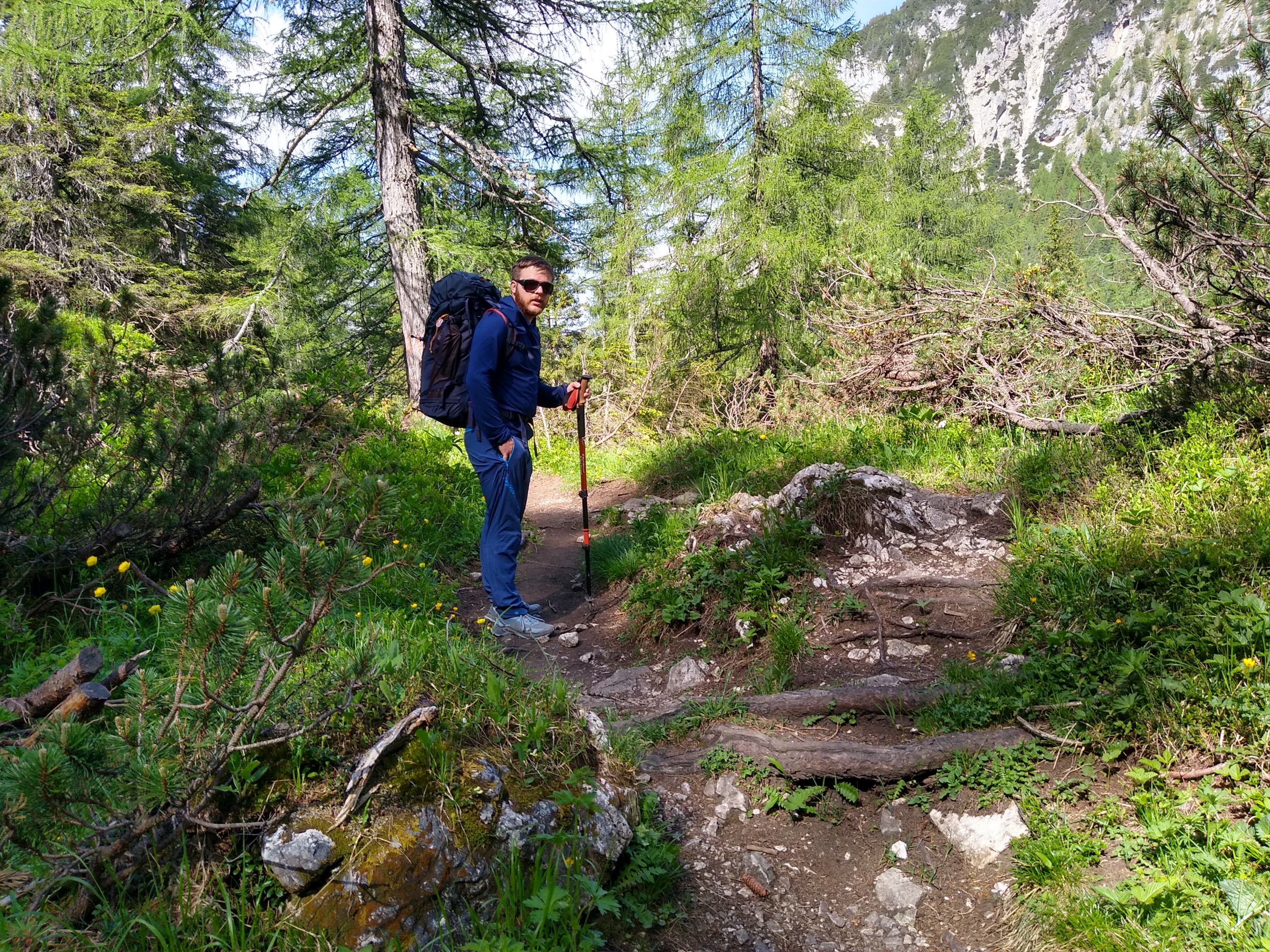 Den morgen geht es heute nur bergab bis zum Refugio Citta di fiume. Danach wollen wir eigentlich die Alternativroutenl über den Forca Rossa Pass nehmen – entscheiden und aber anders als wir die steile Schneewand sehen, die derzeit den Pass darstellt. Stattdessen führt unser weiterer Weg in stetem auf und ab durch Wald, eine nette Abwechslung, besonders bei der prallen Sonne heute.