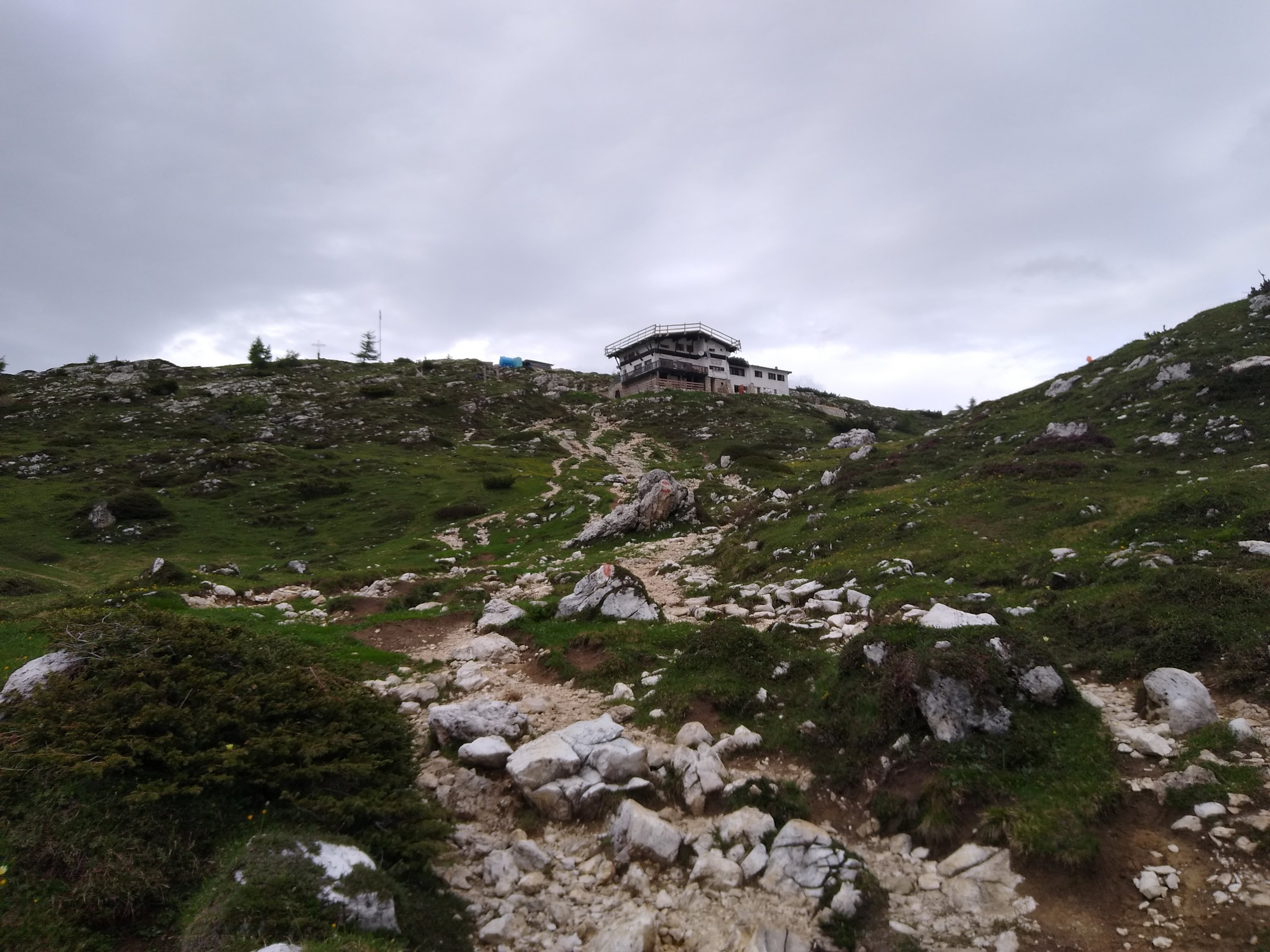Eigentlich wollten wir diese Nacht Zelten, doch das Terrain ist denkbar schlecht. So laufen wie noch weiter bis zum Refugio Attillio Tissi. Dafür sind noch einige extra Höhenmeter zu bewältigen, die letzten Meter bringen geben und dann den Rest.