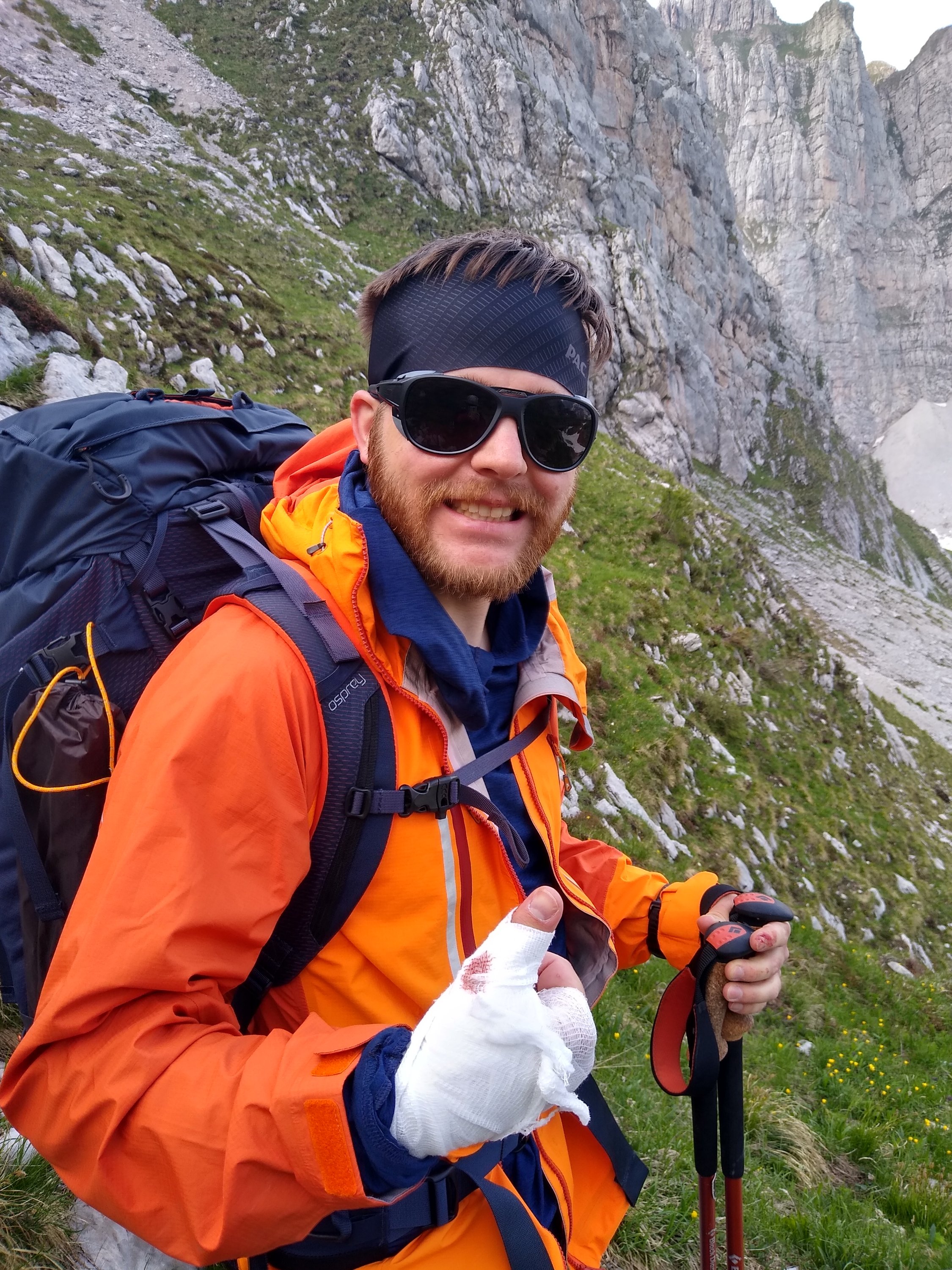 Na, der Tag hatte es ja in sich. Gott sei Dank ist Dreamwalker in Erster Hilfe für gestrauchelte Hiker geübt. Hoffentlich kann man mit dem kunstvollem Verband noch gut klettern und -vor allem – gut sichern! Gute Besserung. Tolle Tour und ganz schön tough.